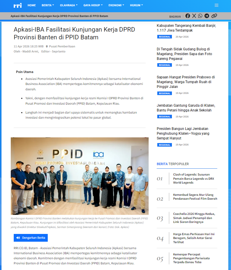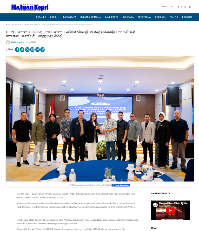 Apkasi menggelar pertemuan tindak lanjut implementasi Pusat Promosi Investasi Daerah (PPID). Kegiatan berlangsung di Batam, Rabu (15/4/2026).