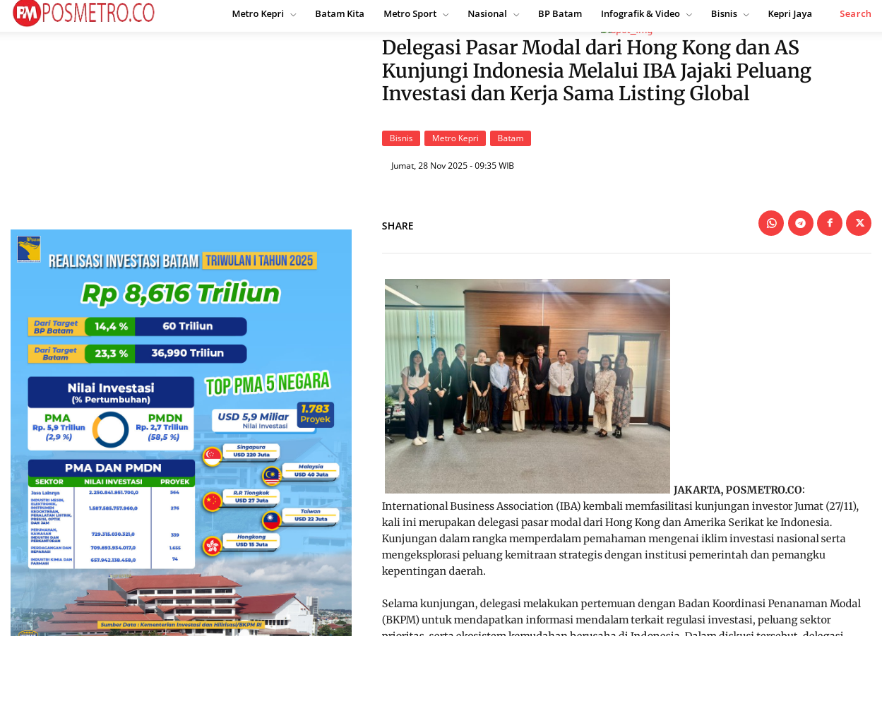 DELEGASI PASAR MODAL DARI HONGKONG DAN AS KUNJUNGI INDONESIA MELALUI IBA JAJAKI PELUARNG INVESTASI DAN KERJA SAMA LISTING GLOBAL