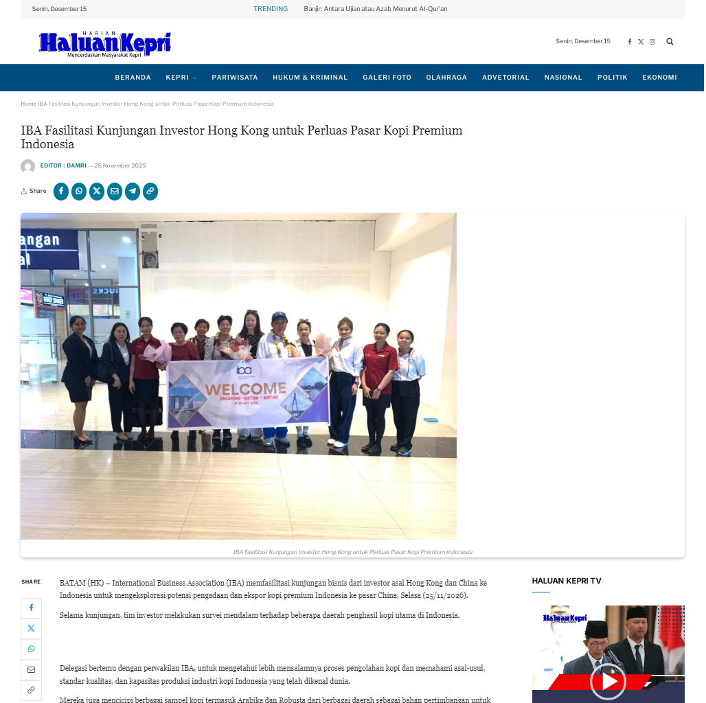 IBA FASILITASI KUNJUNGAN INVESTOR UNTUK PERLUAR PASAR KOPI PREMIUM INDONESIA